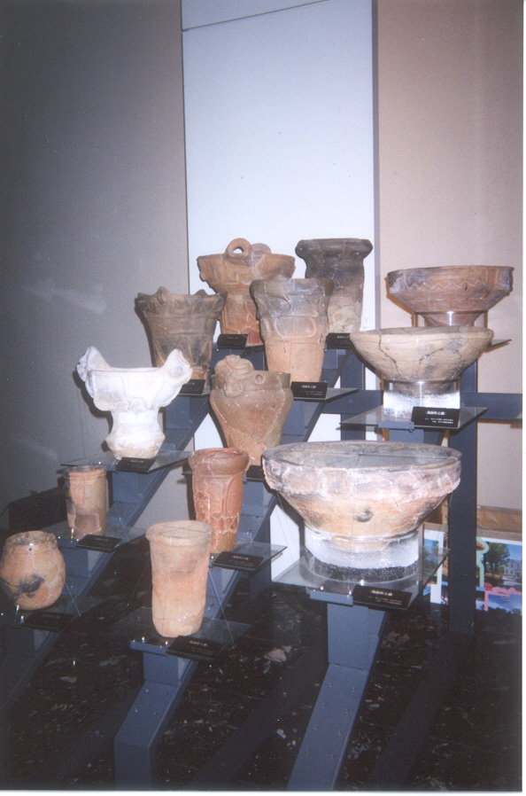 There were several ways of pottery use in the Fuchu area. Most pottery that was made was used for religious reasons. People made pottery for the dead to bury it with the body in the coffin. The pottery buried with the body symbolized the class and importance of that person which shows that there were some class difference and central power within the society. A lot of the pottery that was buried with the body looked different from the others. There were handles and some designs symbolizing the importance of the figure followed by religious beliefs. Pottery was used for other things, too, such as housing, fishing, and cooking. Grinding bowls for 'omochi' was made from pottery too and roofs were made out of pottery. There were cups with symbols and patterns drawn on them. As you can see, pottery was used in different ways in the Tama civilization.
