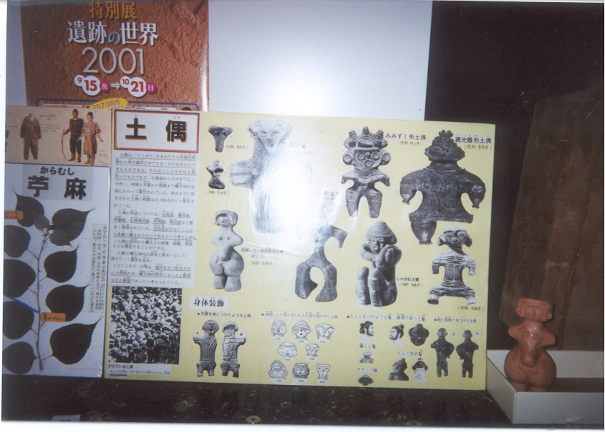 When Soren went to the museum at Fuchu Kyodo no Mori, he saw an exhibit where there were displays of pottery statues from 700-250 A.D. The statues were made out of reddish-brown clay. The statues were not significantly large, although Soren did see one statue that was about four feet tall. All the pottery statues were extremely detailed in patterns. All the statues were of pregnant women. From the statues, archaeologists were able to conclude that Jomon and Yayoi people worshipped pregnant woman and nature (fertility). Because of their need for lots of harvest, a larger population, and good health, they would worship statues of fertility for help. Some of the other statues were also worshipped to have more animals to hunt so they could survive.